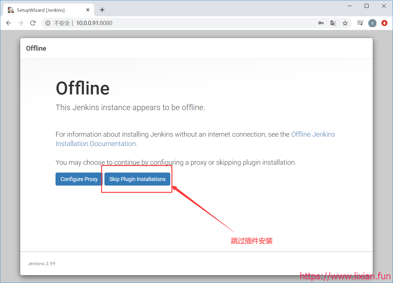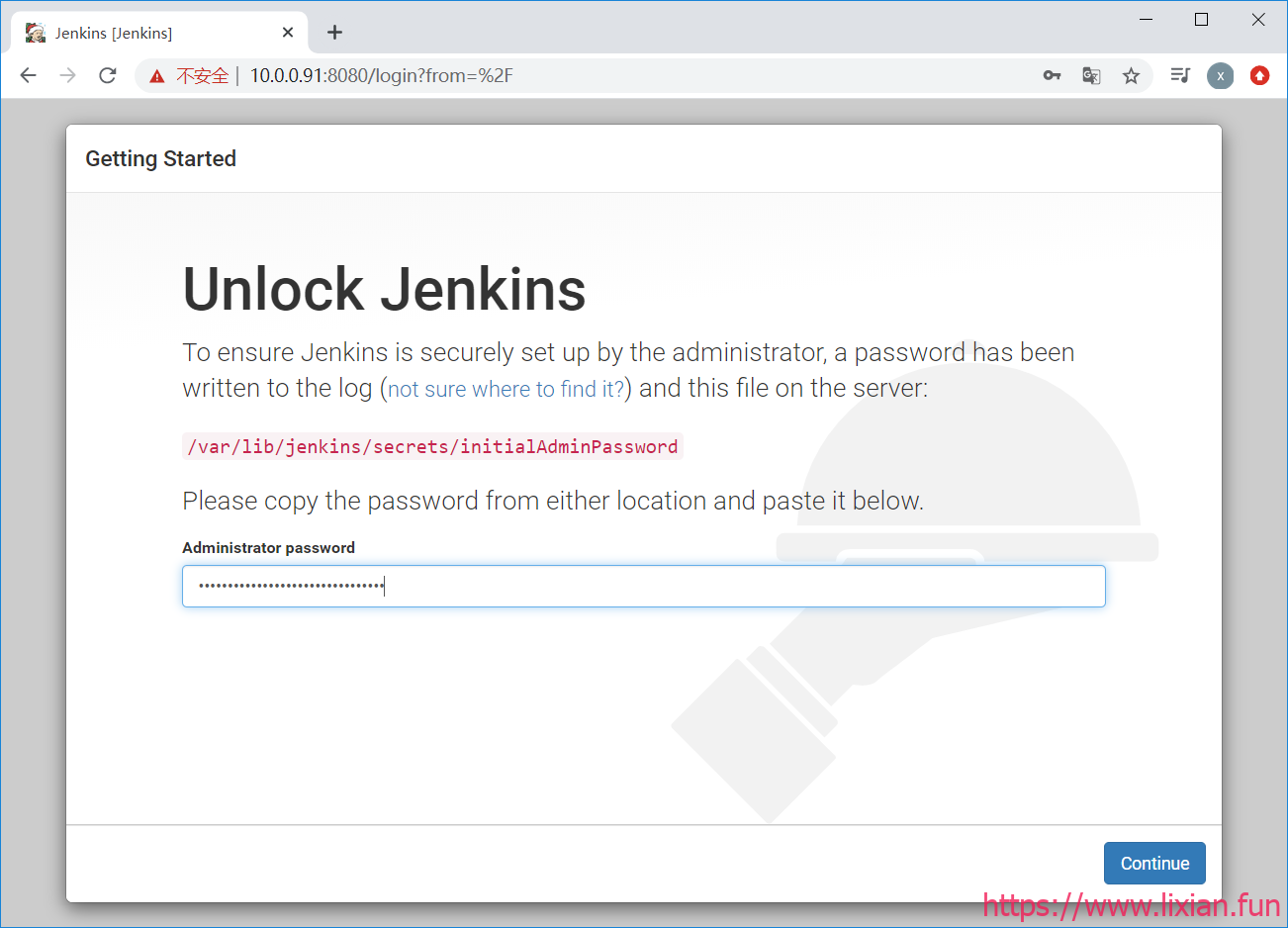 #根据提示查看Administrator密码 [root@jenkins ~]# cat /var/lib/jenkins/secrets/initialAdminPassword 92969dd116fa49969a88224a2144c1c6 [root@jenkins ~]#
