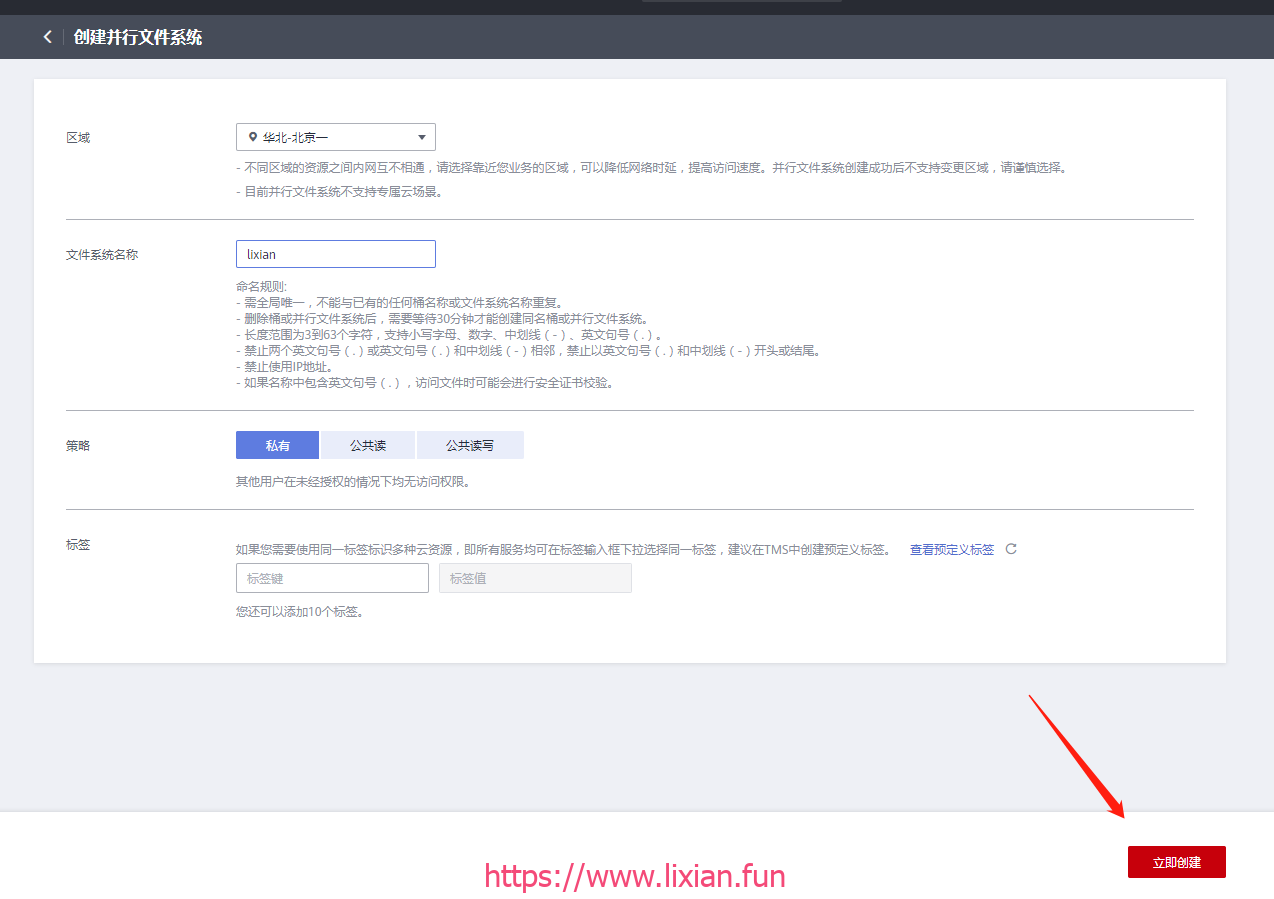 (1)打开华为云控制台,找到对象存储服务,进入并行文件系统